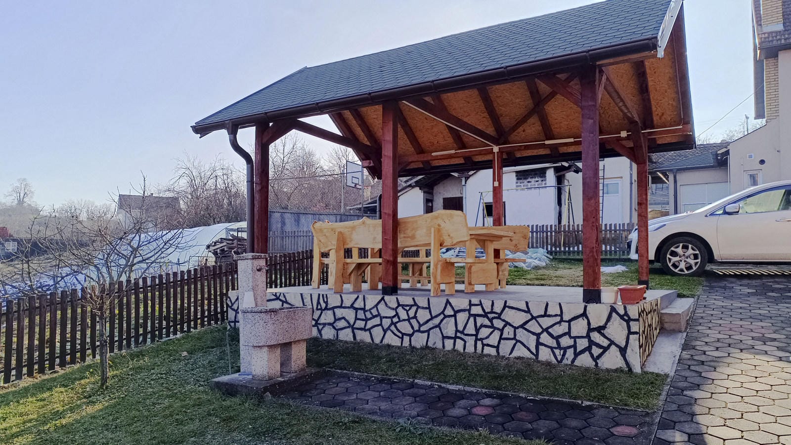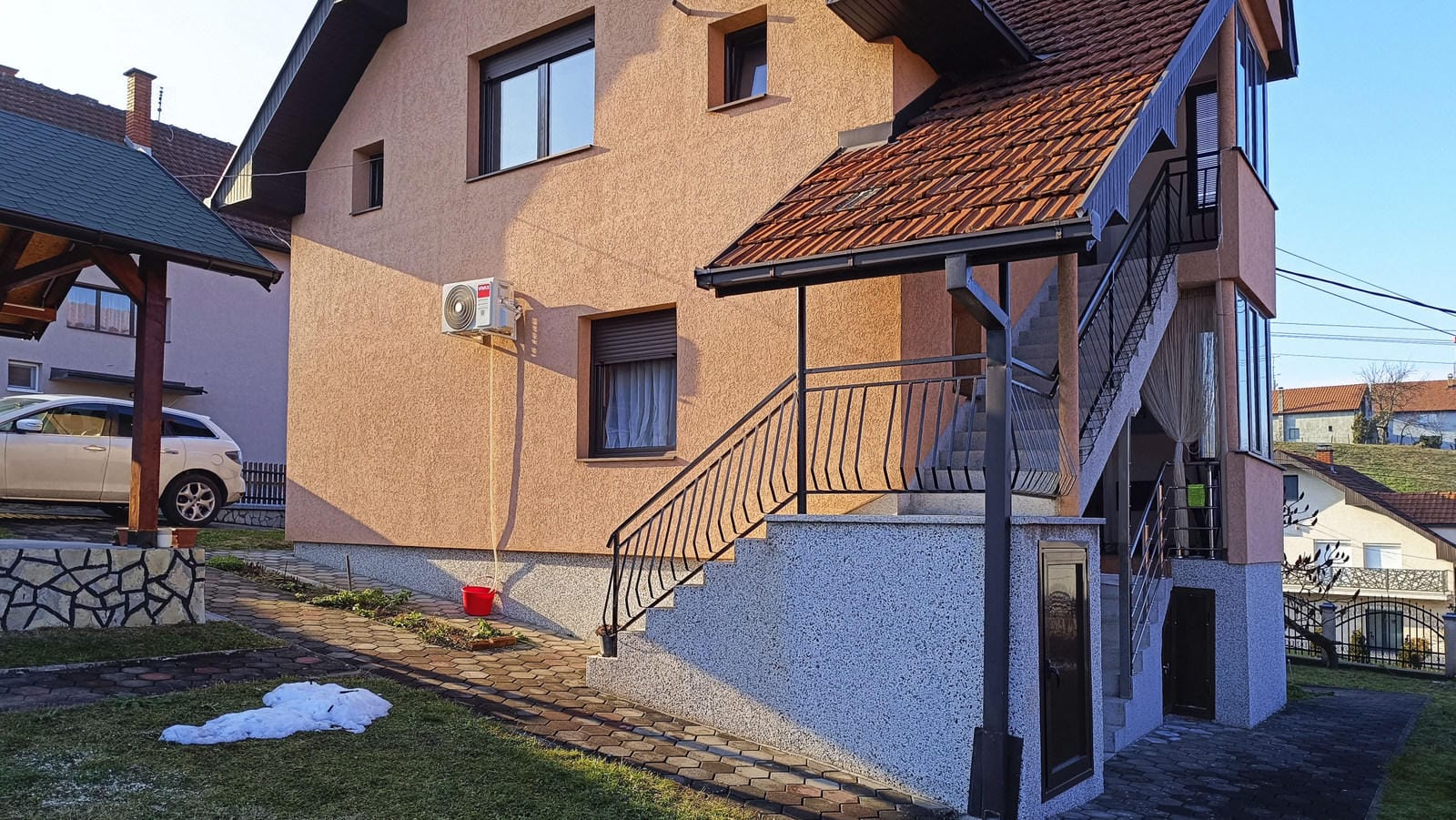 За домом находится скрытая от посторонних глаз новая большая беседка (летниковац) с изумительным видом на город.