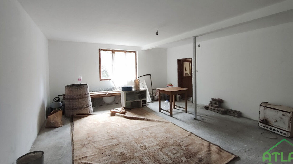 Первый этаж в настоящее время используется для хозяйственных нужд. Он состоит из двух комнат, кладовки и помещения, предусмотренного под ванную комнату.
