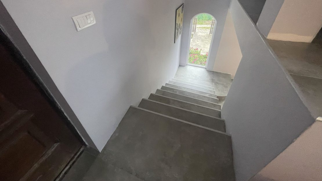 - Первый этаж: просторная гостиная (два входа), ванная комната и котельная.