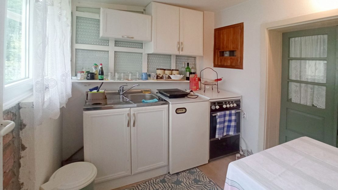 - glavna stambena kuća (60 m2) sastoji se od kuhinje koja se nalazi direktno kod ulaza, kupatila, dnevne sobe i dve spavaće sobe;