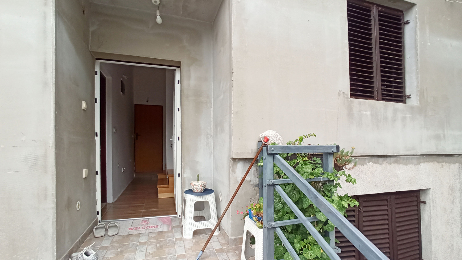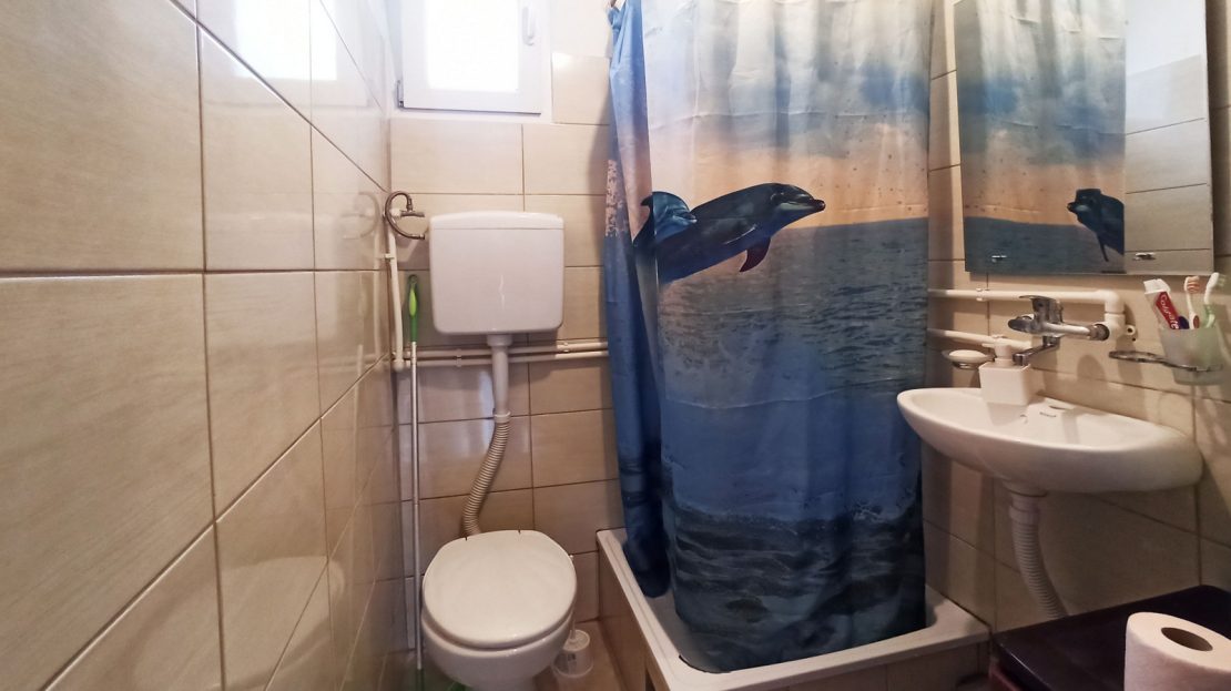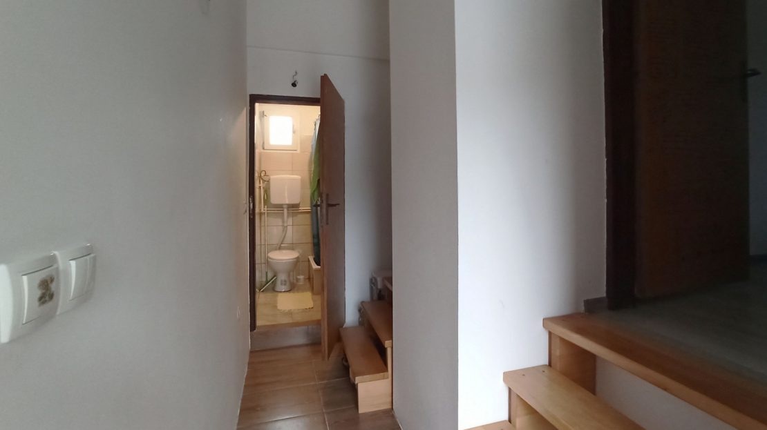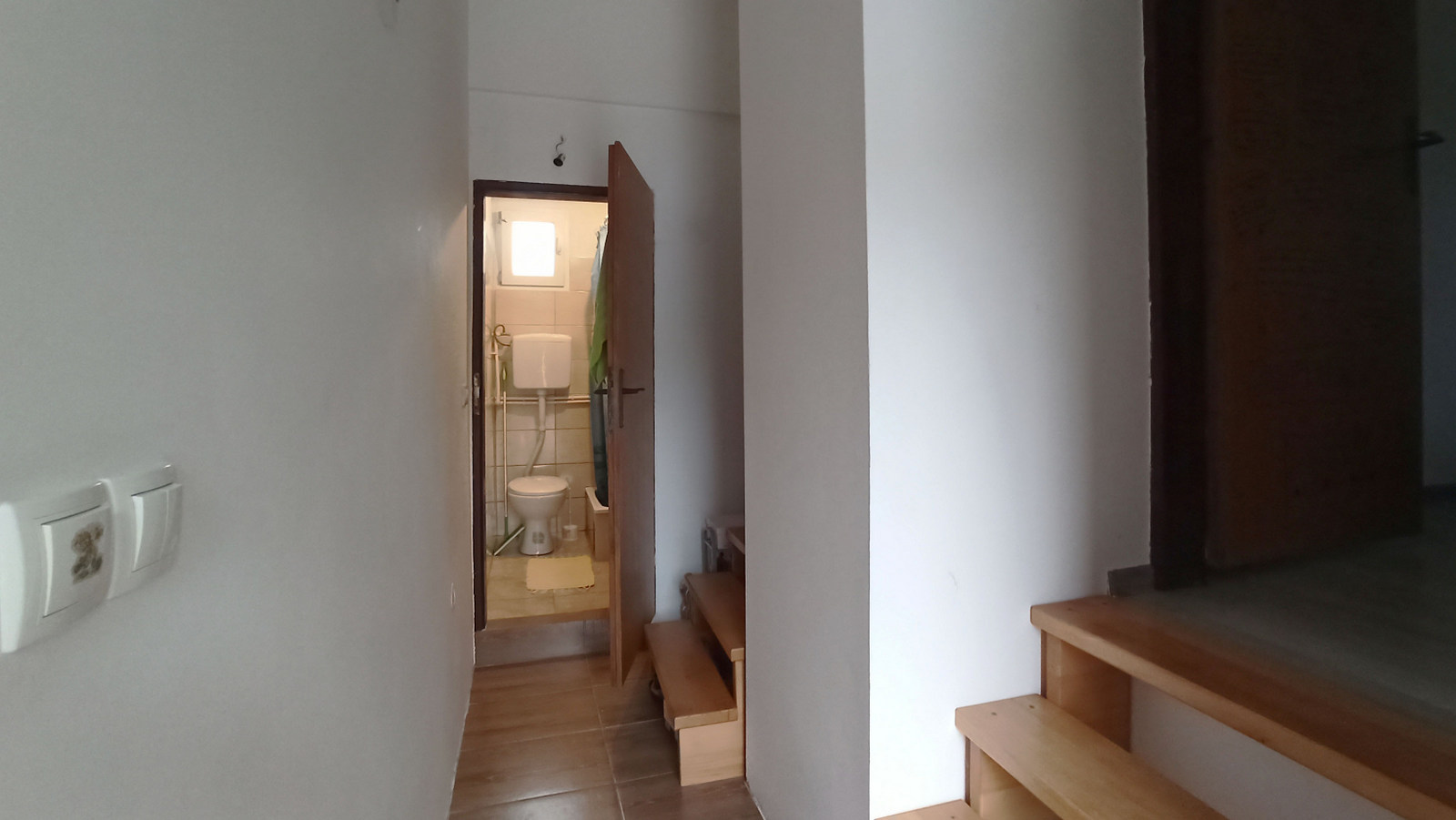 - Donji nivo (ulaz sa fasade): apartman od 15 m² sa kupatilom, kuhinjom i garderoberom.