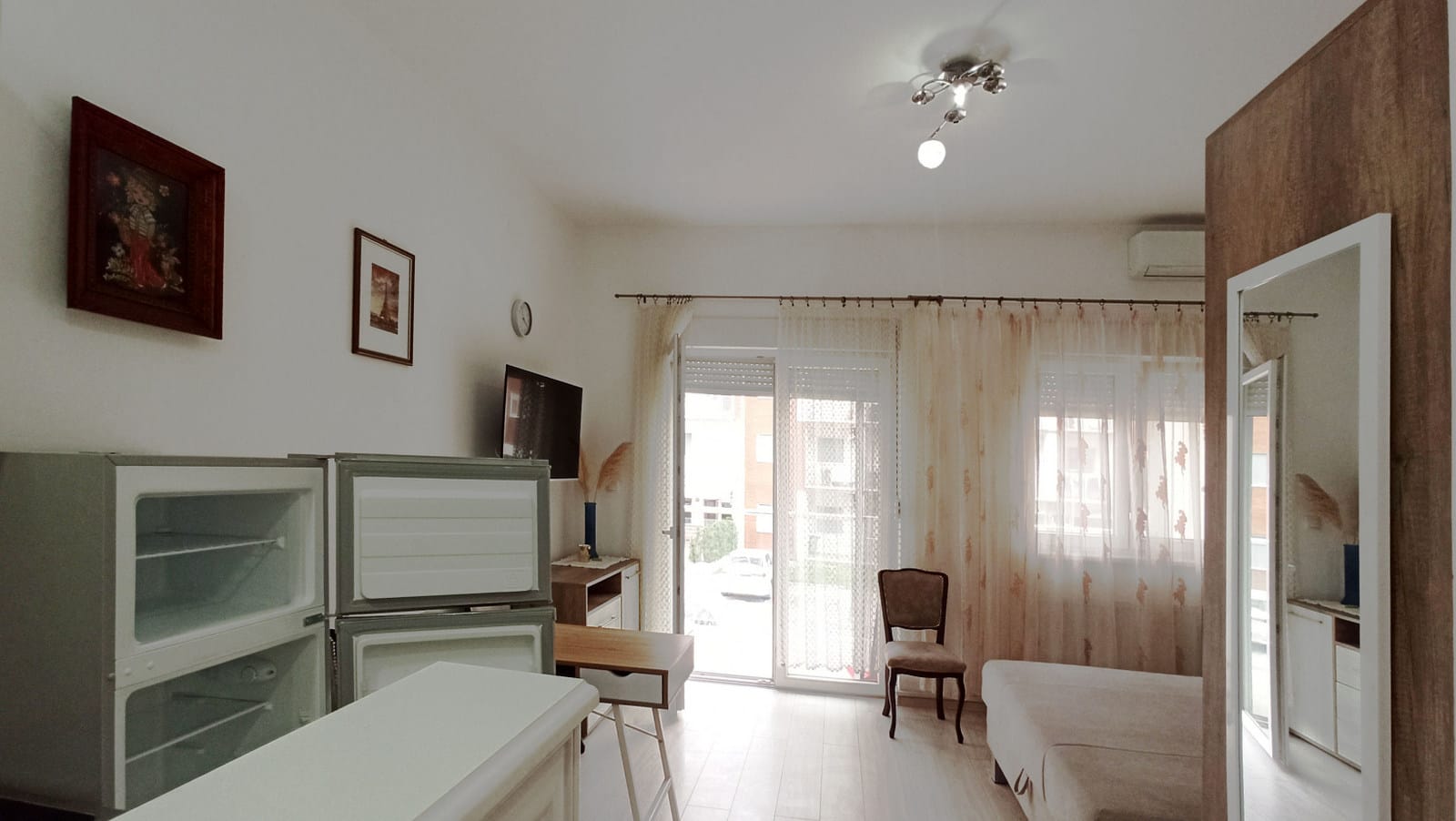 - Grejanje: Centralno grejanje (radijatori) obezbeđuje komfor tokom zime, dok je za letnje mesece instaliran klima uređaj.